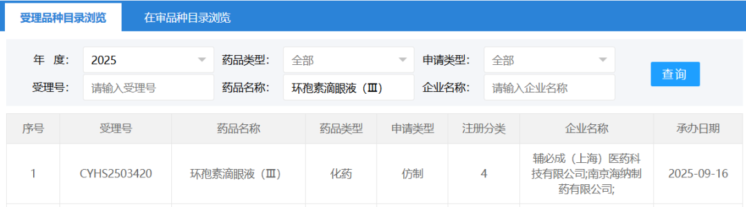 近日,bv1946伟德官网作为上市许可持有人开发的环孢素滴眼液(Ⅲ)申报上市并成功受理(受理号CYHS2503420)